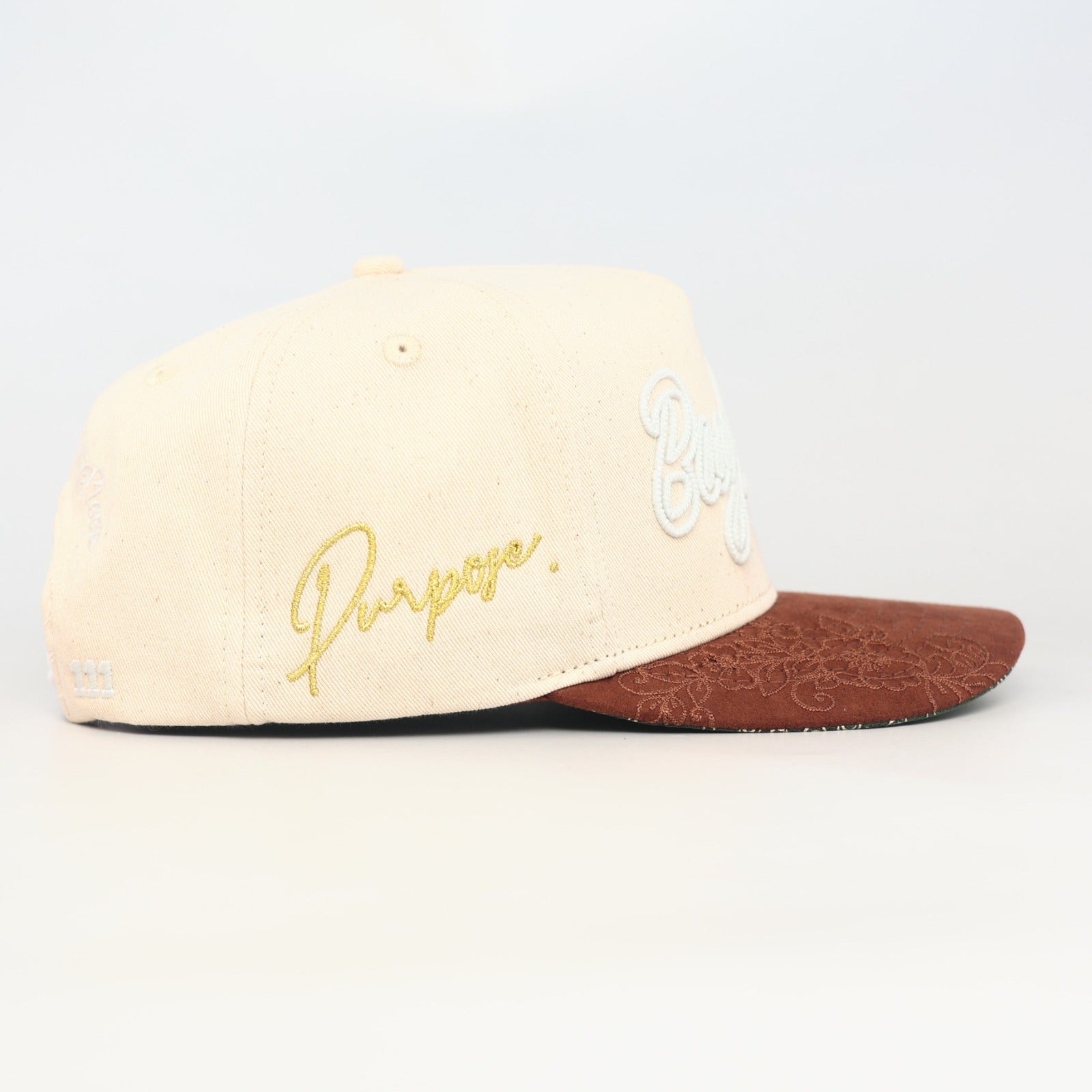 - Design: 5-panel, structured, high-profile crown.