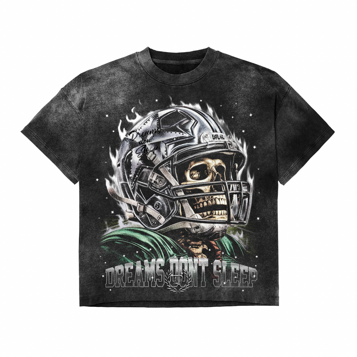 Vintage Graphic Tee (Football Skull - Dark Charcoal)
